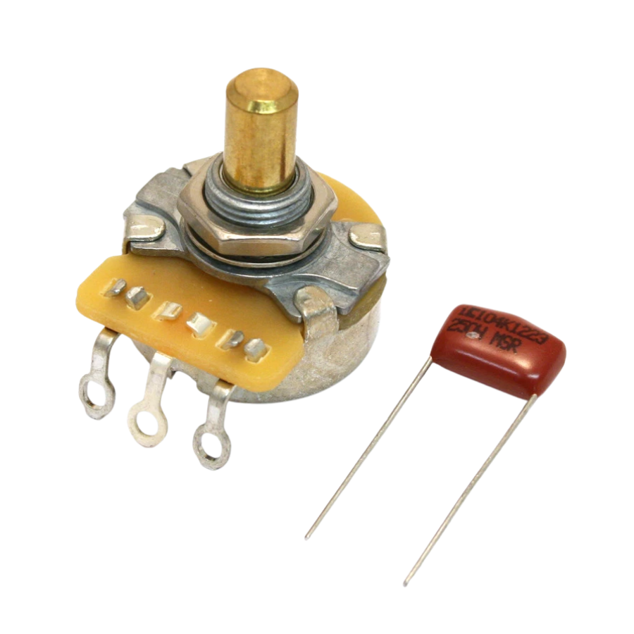 - Vintage-accurate 250K 3/8″ solid shaft potentiometro para volumen o tono